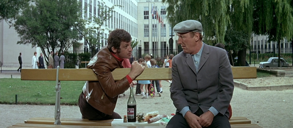 Le Cerveau revolves around two competing criminal teams. The first is a pair of bumbling French thieves, while the second is headed by “Le Cerveau”, a British mastermind with ties to the Mafia. They plan to execute the same heist: the robbery of a train holding the “secret funds” of fourteen NATO countries as it travels from Paris to Brussels on 16 July 1967. Both teams conduct espionage to gain information about the train, to the extent that “Le Cerveau” even goes undercover as a NATO colonel overseeing the transfer of the funds (stuffed in duffle bags identifiable by their country flags) at the Gare du Nord train station in Paris.