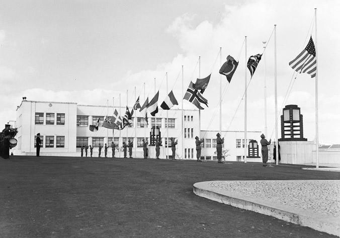The flags of Greece and Türkiye are raised alongside those of the other NATO Allies at the Ministerial Meeting in Lisbon, Portugal in February 1952.