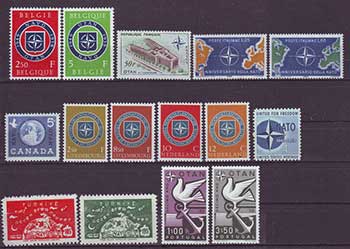 To mark NATO’s anniversary, nine NATO Allies issued a variety of commemorative stamps in 1959.