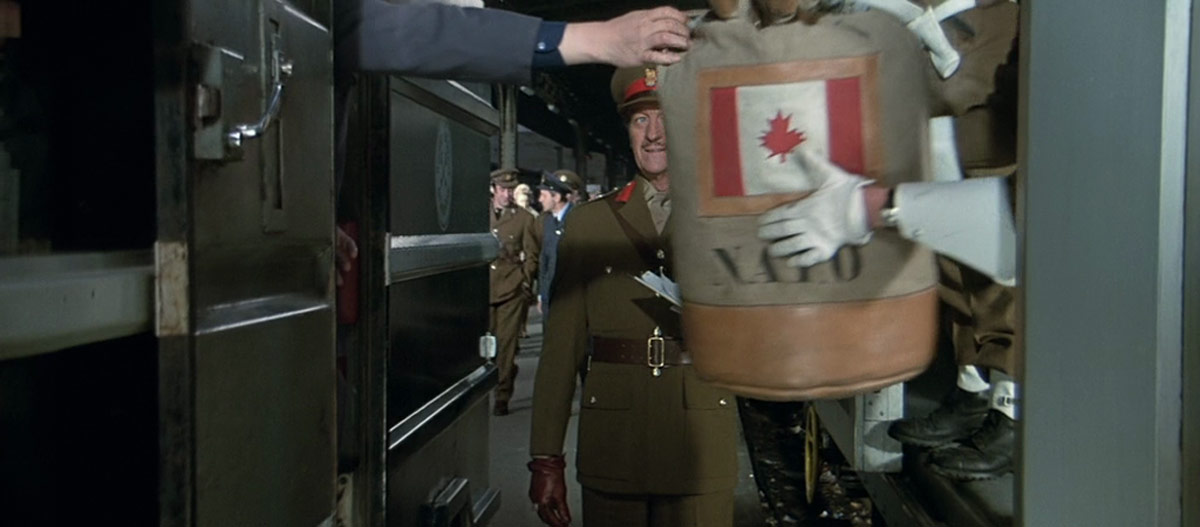 Le Cerveau revolves around two competing criminal teams. The first is a pair of bumbling French thieves, while the second is headed by “Le Cerveau”, a British mastermind with ties to the Mafia. They plan to execute the same heist: the robbery of a train holding the “secret funds” of fourteen NATO countries as it travels from Paris to Brussels on 16 July 1967. Both teams conduct espionage to gain information about the train, to the extent that “Le Cerveau” even goes undercover as a NATO colonel overseeing the transfer of the funds (stuffed in duffle bags identifiable by their country flags) at the Gare du Nord train station in Paris.