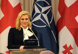 Ambassador Kolinda Grabar-Kitarovic, NATO Assistant Secretary General for Public Diplomacy, paid a visit to Georgia on 6 and 7 April to inaugurate the NATO Week. She delivered a keynote speech at the conference “Road to NATO: Sharing Integration and membership experience” and also engaged in public diplomacy activities with youth and key opinion formers.
