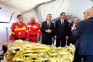 Around 2,000 personnel from about 40 countries trained together in Serbia in a large-scale emergency response exercise based on an earthquake scenario. The exercise provided the opportunity to practise international cooperation and strengthen the ability of teams from different nations to work effectively together to save lives in an emergency situation. “The lessons we learn this week will help us to save more lives in the years to come,” said NATO Secretary General Jens Stoltenberg, who attended the inauguration of the exercise together with President of the Republic of Serbia Aleksandar Vucić.