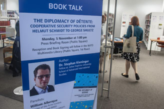 Dr Stephan Kieninger, fellow at Johns Hopkins University, School of Advanced International Studies, is the author of The Diplomacy of Détente: Cooperative Security Policies from Helmut Schmidt to George Shultz. He presented and discussed his book during a visit to NATO Headquarters in Brussels, Belgium on 5 November, 2018.