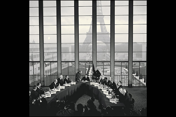 NATO Allies sign the membership invitation to West Germany at the Alliance’s former Headquarters in Paris, France on 23 October 1954.