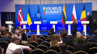 Joint press conference by NATO Secretary General Mark Rutte with President Nausėda of Lithuania, President Duda of Poland, President Dan of Romania, Prime Minister Frederiksen of Denmark, and President Zelenskyy of Ukraine at the B9-Nordic Summit in Vilnius
